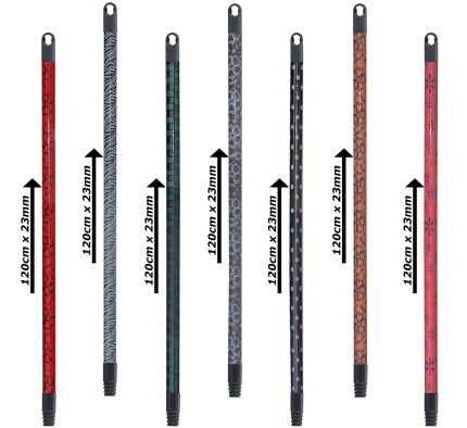 Cabo para Pás de lixo, produzido com madeira de reflorestamento, plastificado em estampas em listras,