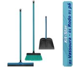 Kit star contém uma vassoura com cabo, um rodo com cabo e uma pá para lixo, cabos com pendurador o que facilita o seu armazenamento e organização do espaço. Ideal para funções básicas de limpeza de mais variados pisos e ambientes.