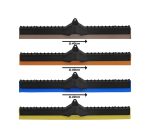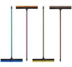 Rodo com cepa plástica preta serrilhada na parte superior para melhor fixação do pano de chão, borracha dupla EVA color para aumentar o poder de secagem dos pisos, cabo em madeira, plastificado com estampas em listras, grande capacidade em remover ou controlar o fluxo de líquido em uma superfície.