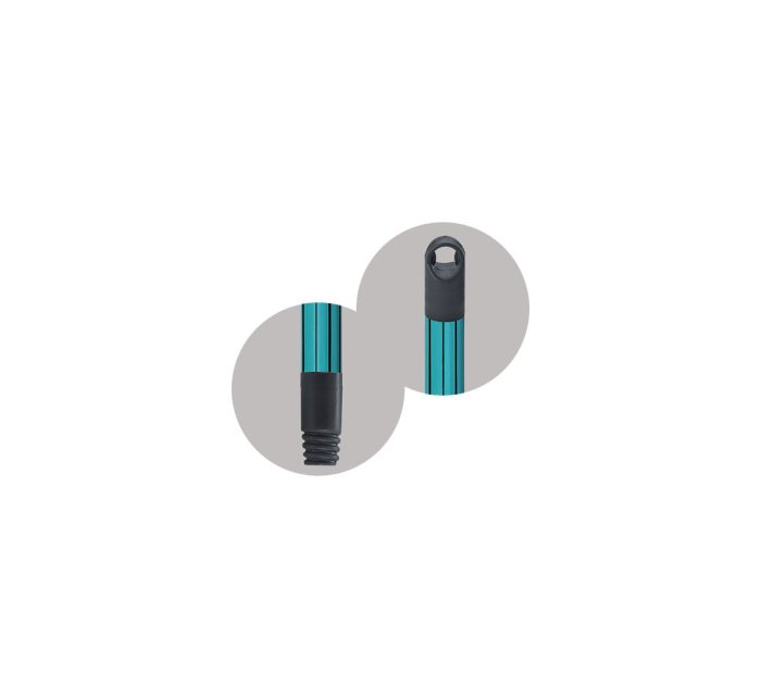 Vassoura com capa e hastes em Nylon 0,30cm, cabo de 1,20m em madeira plastificado com estampas em listras, pendurador longo e rosca plástica.